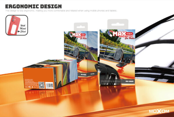 Free your hands from holding your phone and protect your body from neck and back pain with the high-quality Moxom car and office phone holder. The Moxom MX-VS29 Multi-Purpose Magnetic Phone Holder Strong magnet to hold your phone. 360 degree adjustable rotating ball head with adhesive for car and office for convenient and easy movement. The Moxom Glass comes with a smooth, anti-slip surface that protects your phone from scratches. Easy to use with one hand. Available in black. Original Moxom product